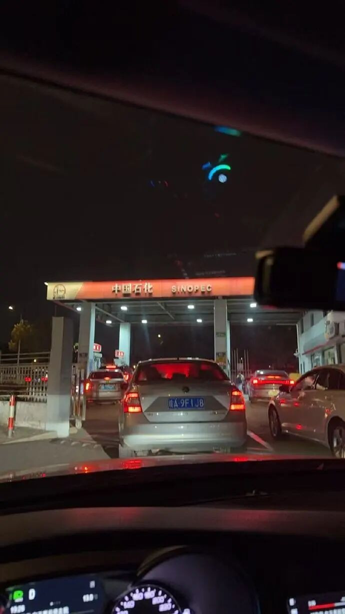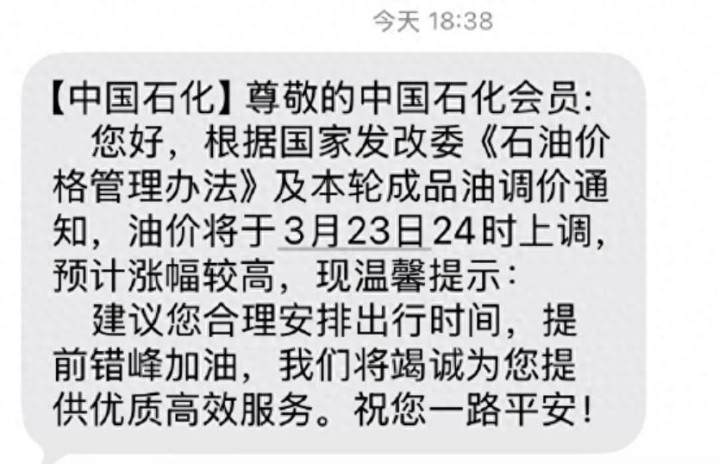 中国石化都发短信提醒了!之前好像从来没遇到过!今夜全国各地加油站盛况,甚至把附近的路都堵了。交警不得不出来维持秩序了。