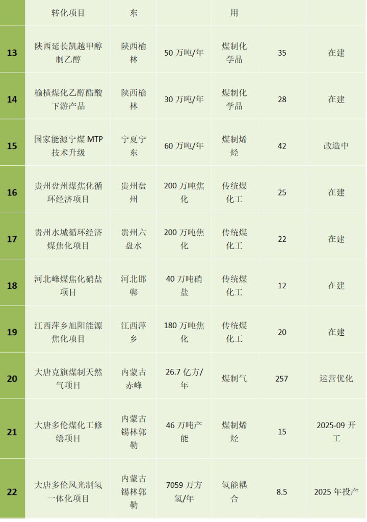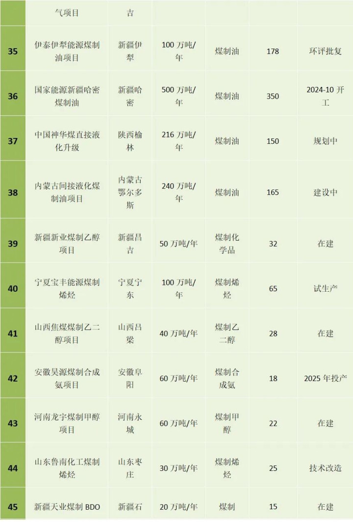 ·哈密市岔哈泉园区:国家能源集团哈密能源集成创新基地项目(总投资1700亿元)采用自主研发的煤直接液化二代技术,年耗煤1420万吨,预计2027年底投产。