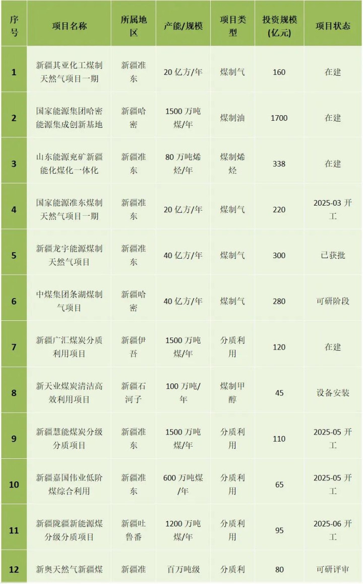 2、投资门槛提升:单个项目平均投资规模超50亿元,其中新疆地区"十四五"以来规划项目群总投资达9000亿元,准东、哈密两地占比超70%。